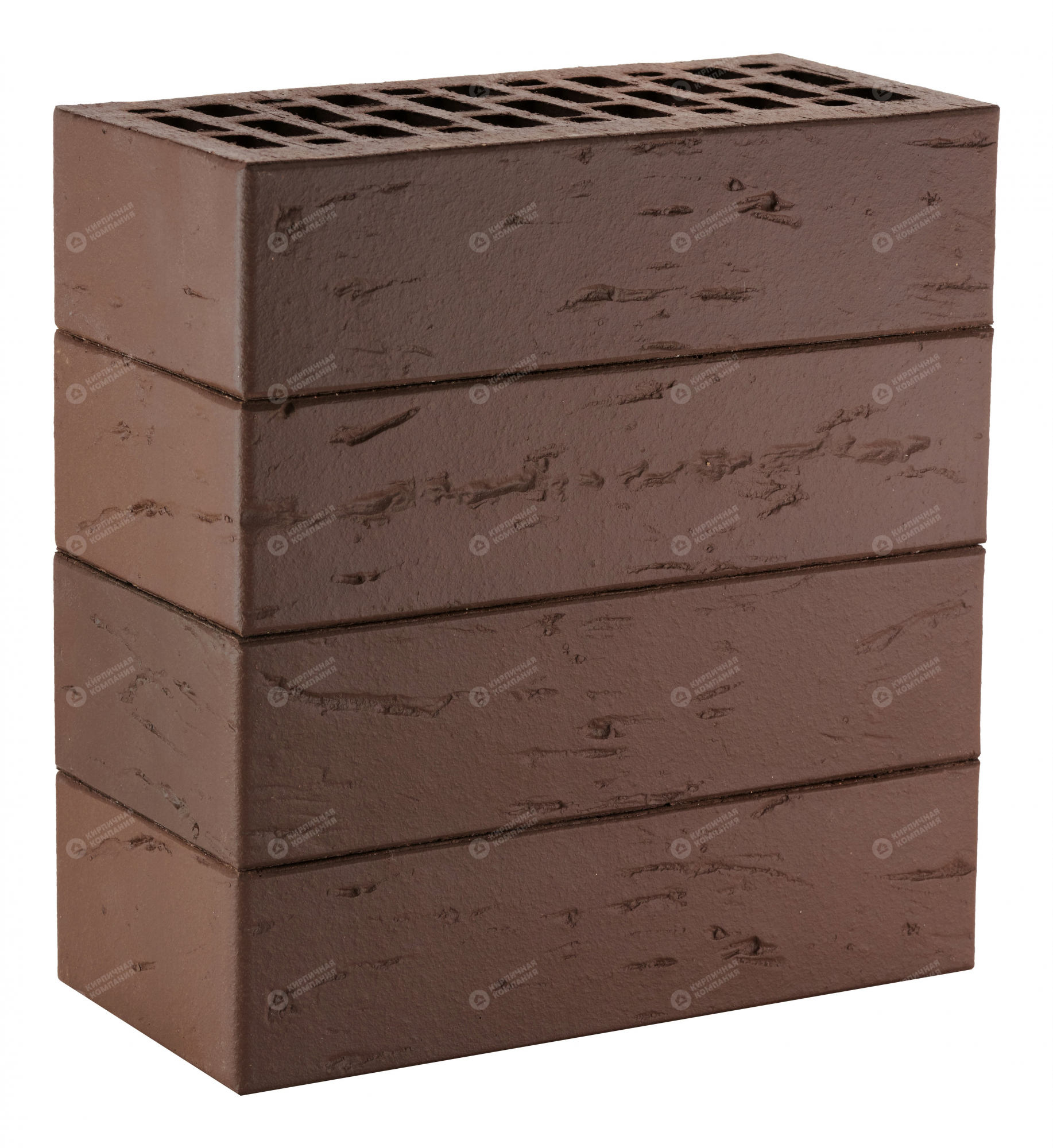 Кирпич облицовочный одинарный ТЕМНО-КОРИЧНЕВЫЙ РУСТИК 1НФ пустотелый
